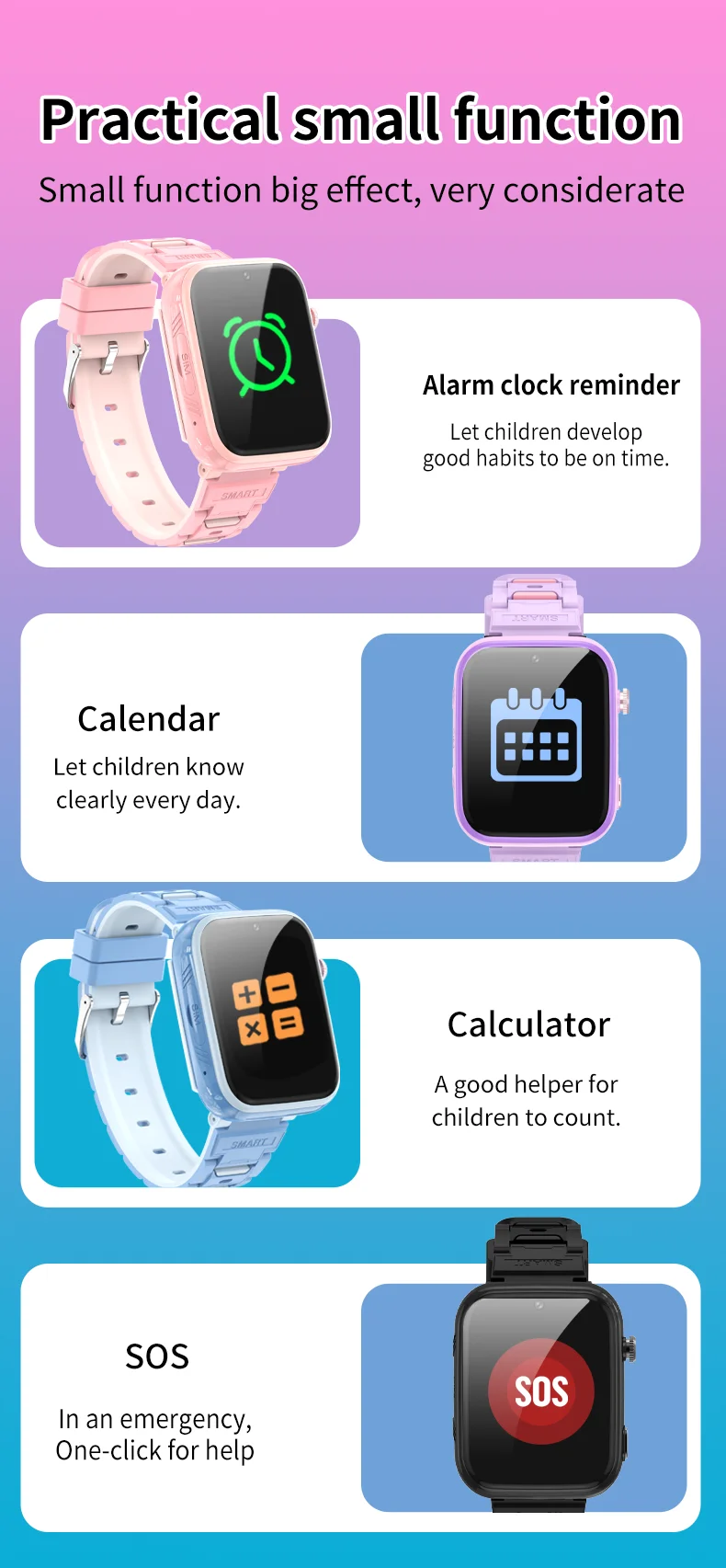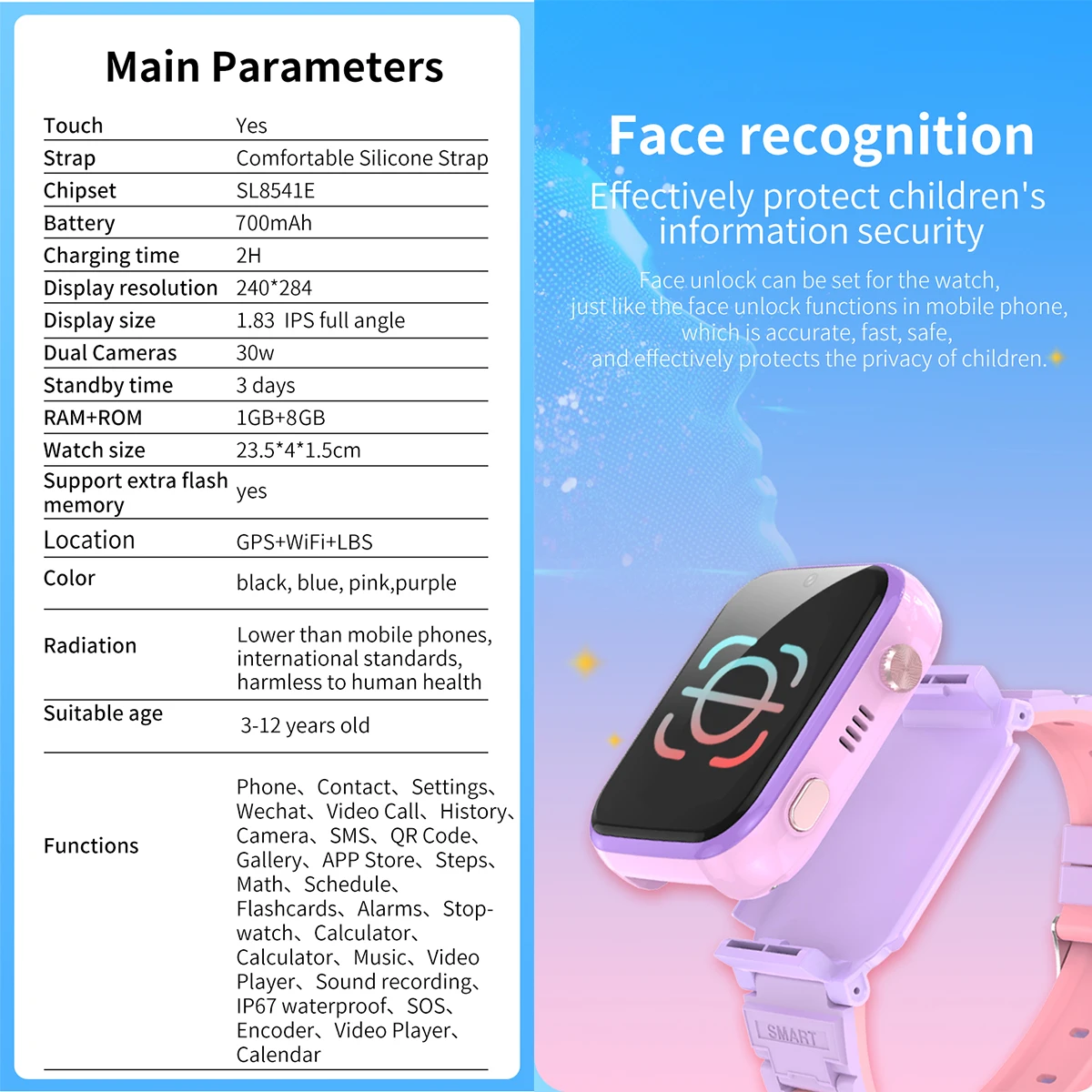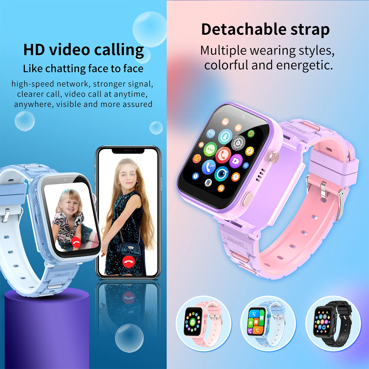 Custom ODM OEM Smart Watch with Sim Card for Kids 4g Video Call WIFI GPS LBS Position HD Camera Video