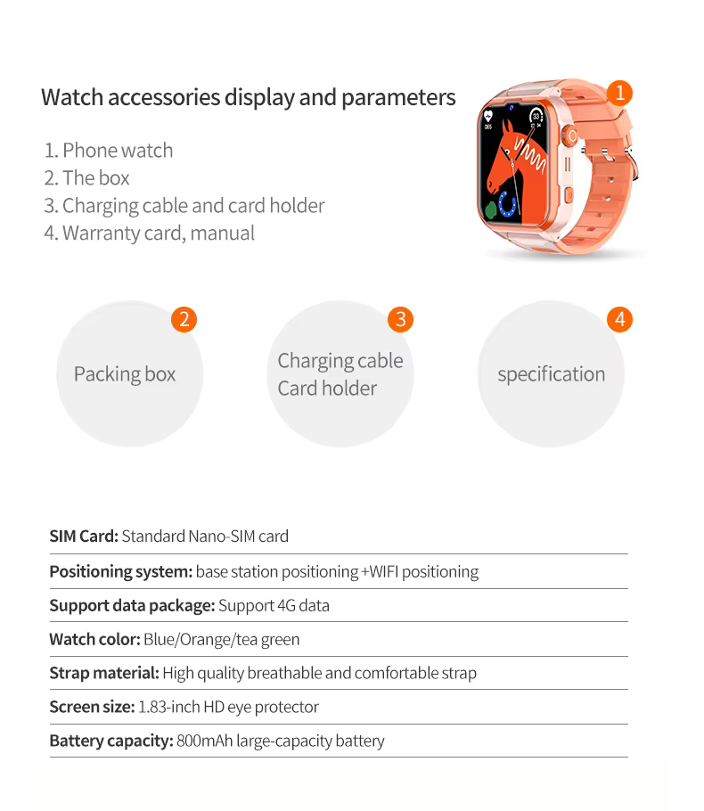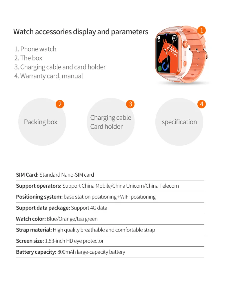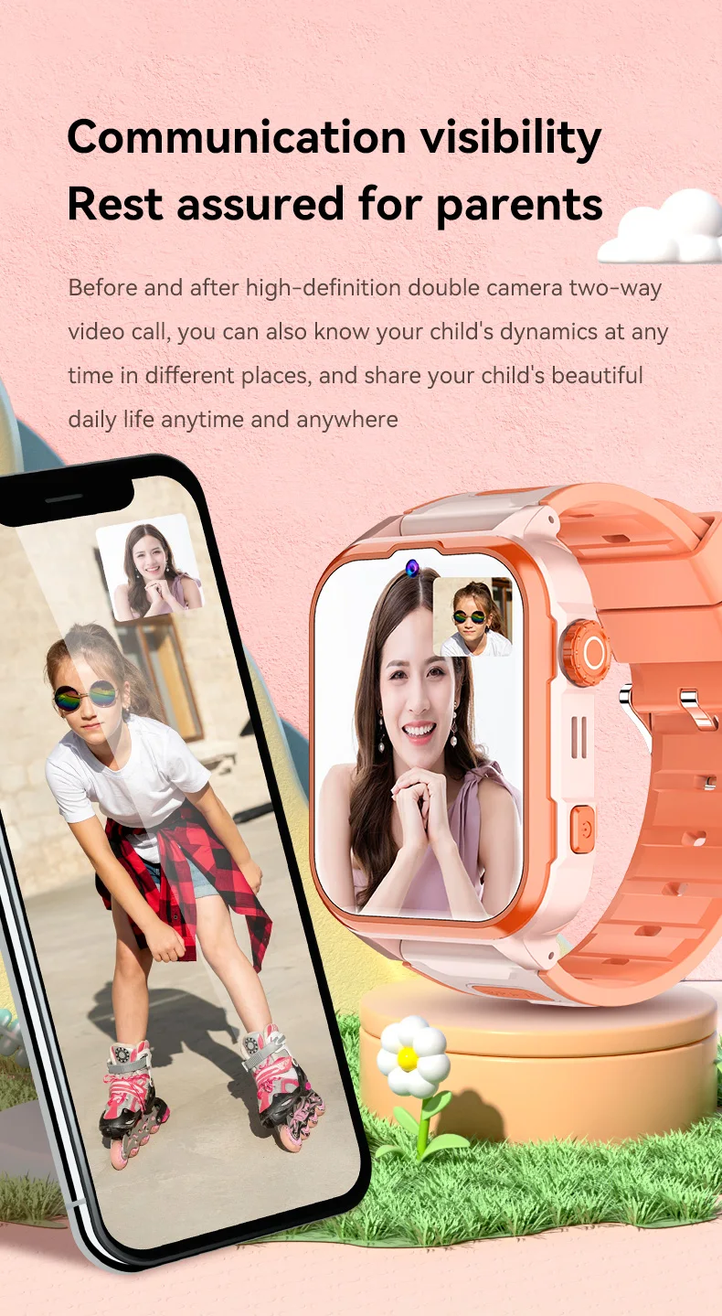 Kids Smart Watch With Sim Card Equipped With Advanced LBS WiFi Hybrid Positioning Technology Two-Way Video Calling SOS Function